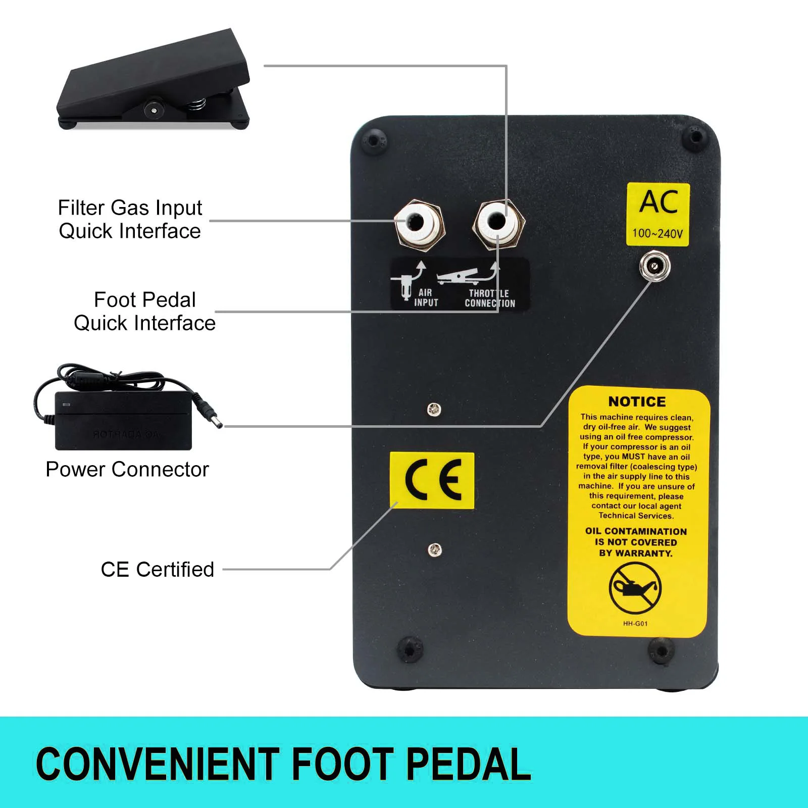 as well as auxiliary air connections for other pneumatic tools (including rotary heads). Two mobile phones and 1 foot of control are included with the HH-G01.